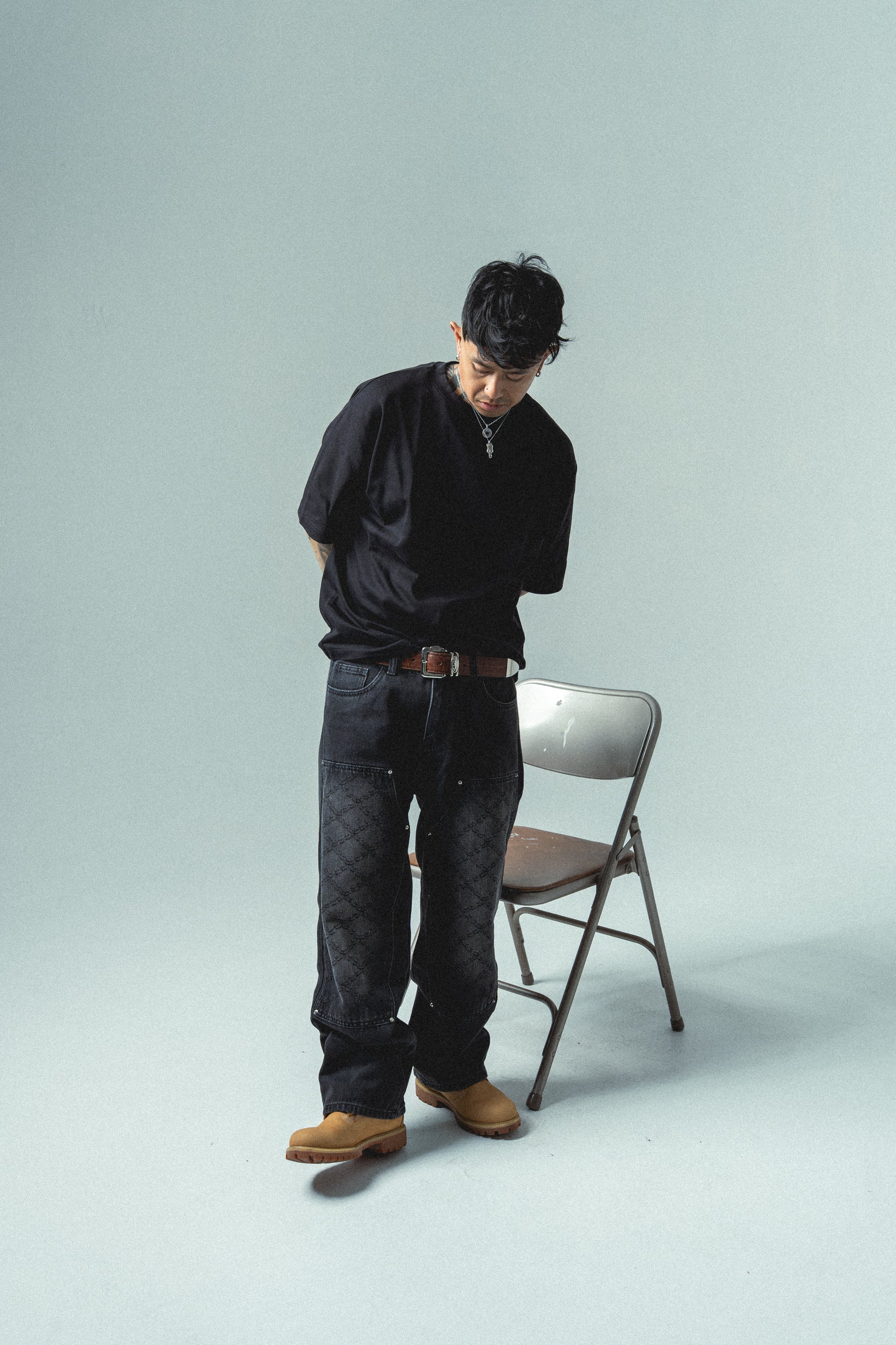 The Fishscale Carpenter features an intricate fishscale pattern embroidered onto the double knee that emerges from through the fade to create a layered effect.